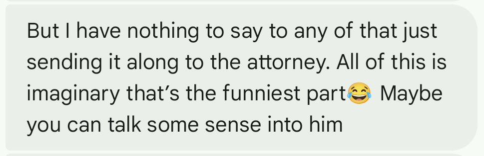 Finally I told him I have an attorney and all the claims are "imaginary" (aka